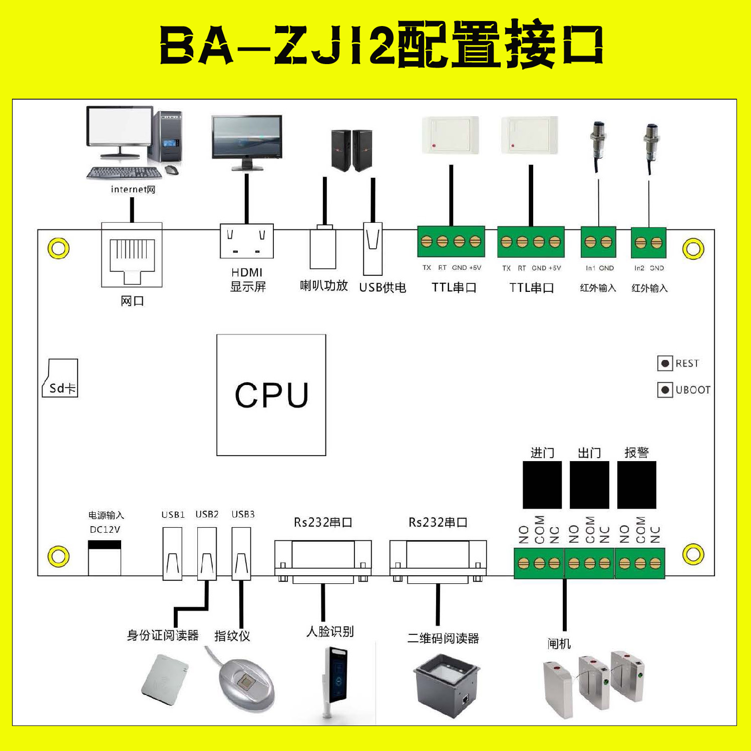 通道閘機(jī)門禁人臉識別指紋采集識別條碼掃描身份證閱讀機(jī)具讀卡器多功能控制板