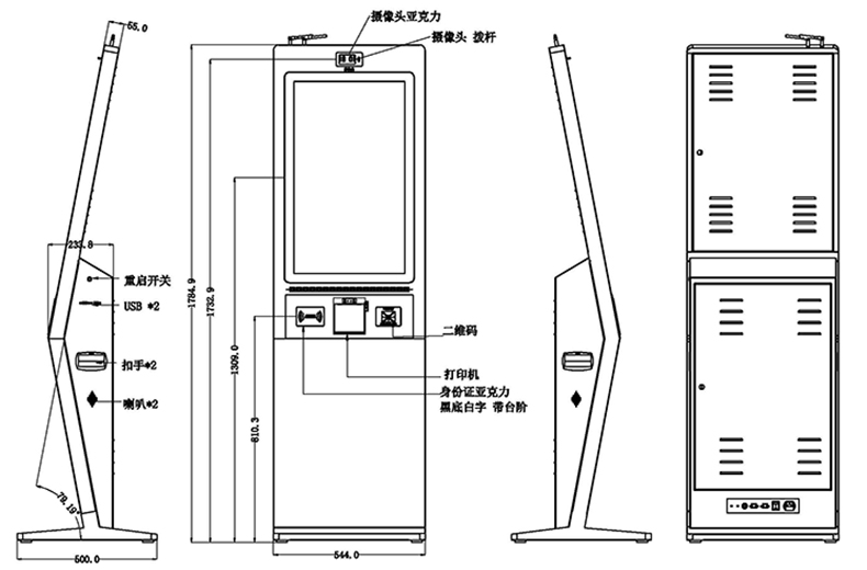 32寸多功能自助終端一體機(jī)整機(jī)符合人體工程設(shè)計,外殼采用鈑金烤漆工藝,外形美觀;設(shè)備內(nèi)部模塊化設(shè)計,主要集成高靈敏電容觸摸屏、高分辨率液晶屏、工控主板、身份證閱讀器、IC卡讀寫器、高清攝像頭、一二維條碼掃描、熱敏打印等模組,產(chǎn)品具有結(jié)構(gòu)合理,操作簡便,觸摸靈敏,性能穩(wěn)定,方便維護(hù)等優(yōu)點(diǎn);同時設(shè)備可安裝安卓系統(tǒng) 和WIN系統(tǒng)供客戶選擇,以及根據(jù)客戶需求進(jìn)行功能模塊定制。